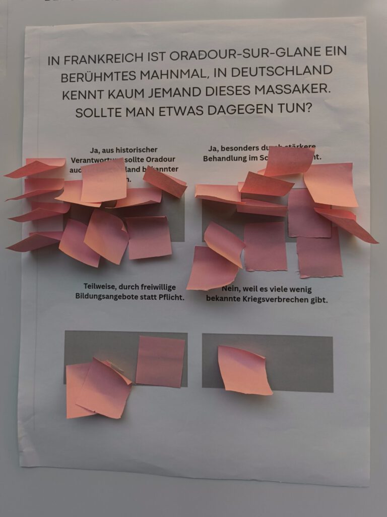 Am 16. Januar 2026 veranstalteten Carlotta und Thilo aus der Klasse 9 im Rahmen ihrer Projektarbeit eine Ausstellung in der Husumer Stadtbibliothek, um „gegen das Vergessen von Oradour“ zu wirken.