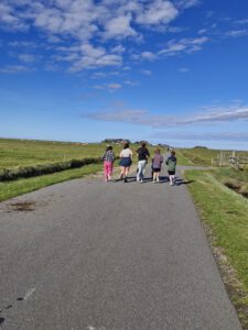 Währenddessen fand auch an unserer Außenstelle auf Hooge der Lauftag statt. Dort liefen die Schülerinnen und Schüler ihre 60 Minuten lang Runde für Runde um die Warften der Hallig – eine ganz besondere Laufstrecke mit Meerblick inklusive.
